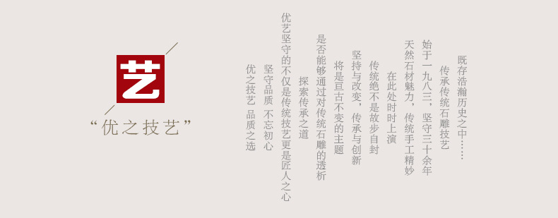 曲陽縣優(yōu)藝園林雕塑有限公司是一家致力于城市雕塑及園林工程雕塑創(chuàng)意、設計、制作、安裝為一體的專業(yè)性雕塑工程公司。公司坐落于全國著名的雕刻之鄉(xiāng)——河北省保定市曲陽縣,為適應日益增長的客戶需求及高標準的工程定制項目,多位志同道合的傳統(tǒng)手工藝人合資組建本公司。